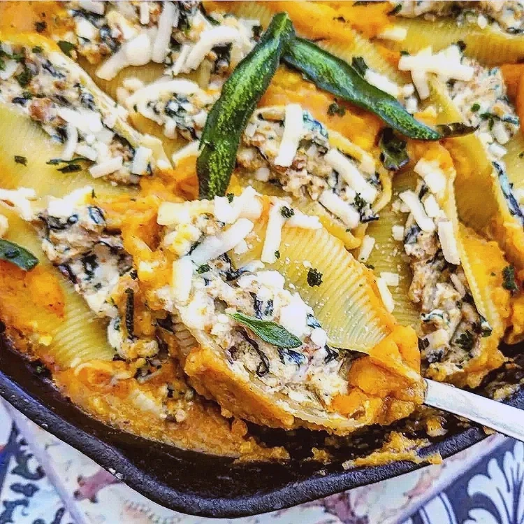 Butternut Squash Stuffed Shells with Sage Sausage, Spinach, and Ricotta