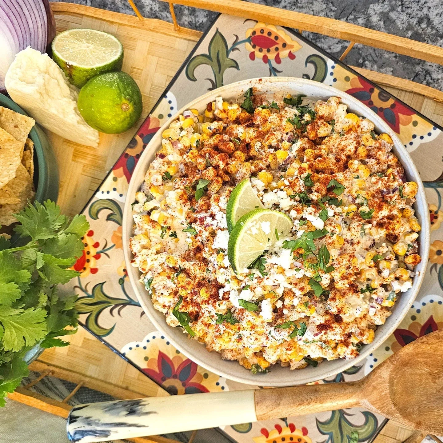 Smoky, creamy, tangy, and just the right amount of heat—this esquites-style corn salsa is layered with flavor in every bite, it’s one of those dishes that tastes like sunshine and disappears fast. Bring chips.
