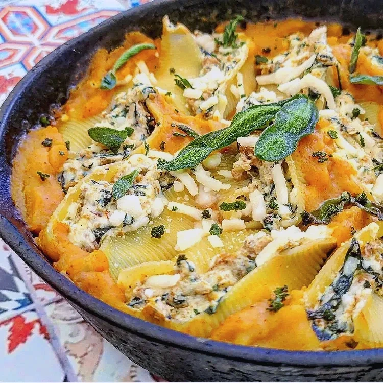 Butternut Squash Stuffed Shells with Sage Sausage, Spinach, and Ricotta